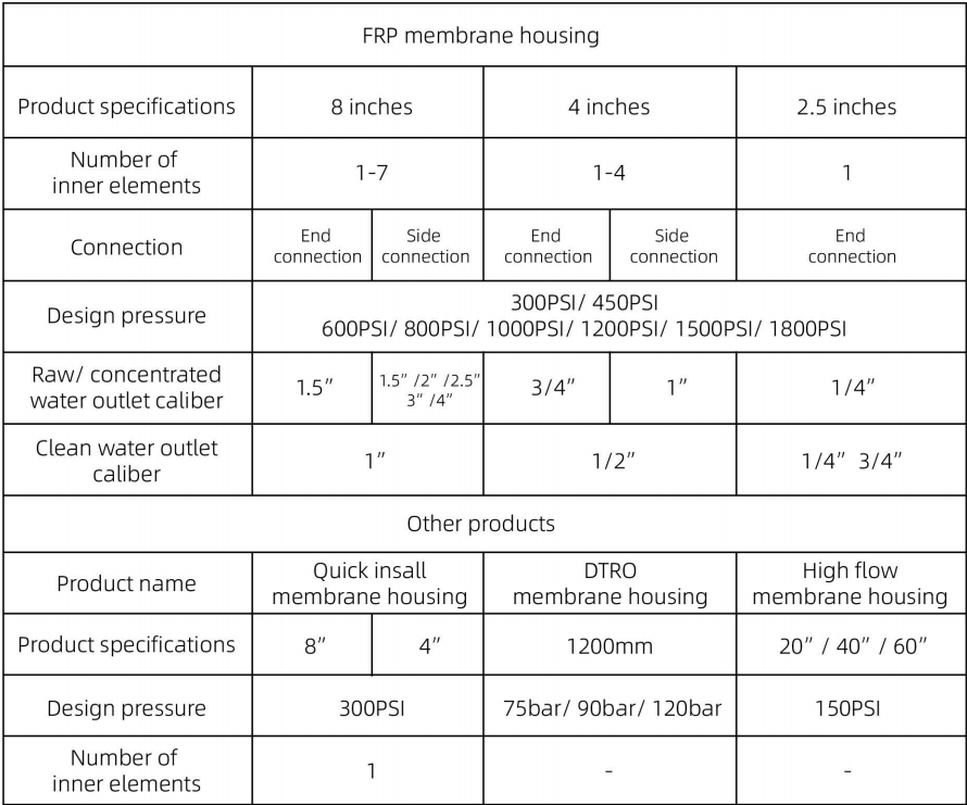 The manufacturing method of the membrane housing is in accordance with the standard JC692-1998, and the allowable working temperature range is - 7 ℃ - 49 ℃. The membrane housing penetration test adopts the hydraulic test method, and the test pressure is 1.5 times of the design pressure. It is applicable to a variety of complex media environments and multiple projects.